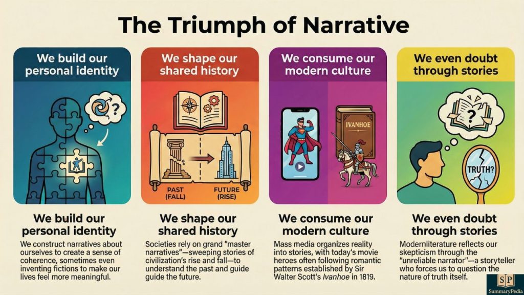- Narrative is our primary tool for transforming a “terrifyingly haphazard” world into a structured, meaningful reality.