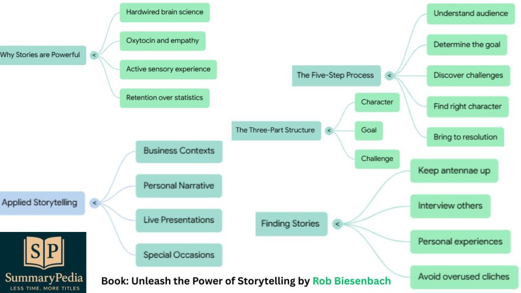 This chapter provides real-world applications of storytelling to achieve specific business goals. For example, a sales leader used a story about her own early-career fears to establish common ground with a skeptical team. Another CEO used a personal story about his love for the company’s heritage to thaw a hostile relationship with factory workers. Biesenbach also explains how the National Park Service uses a tragic story about a hiker to motivate safe behavior more effectively than a list of rules. These examples demonstrate that stories provide the “why” behind the “what”.